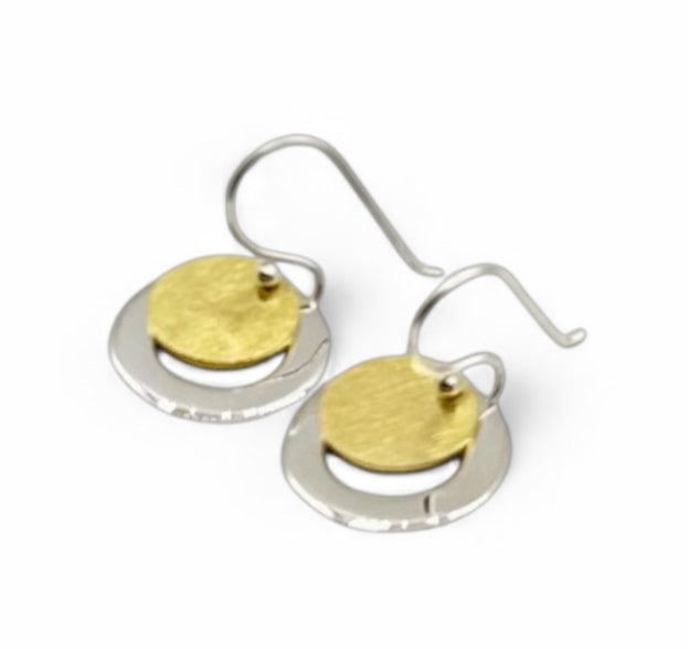 • two piece two tone matte gold 14 kt gold plate and high polish silver