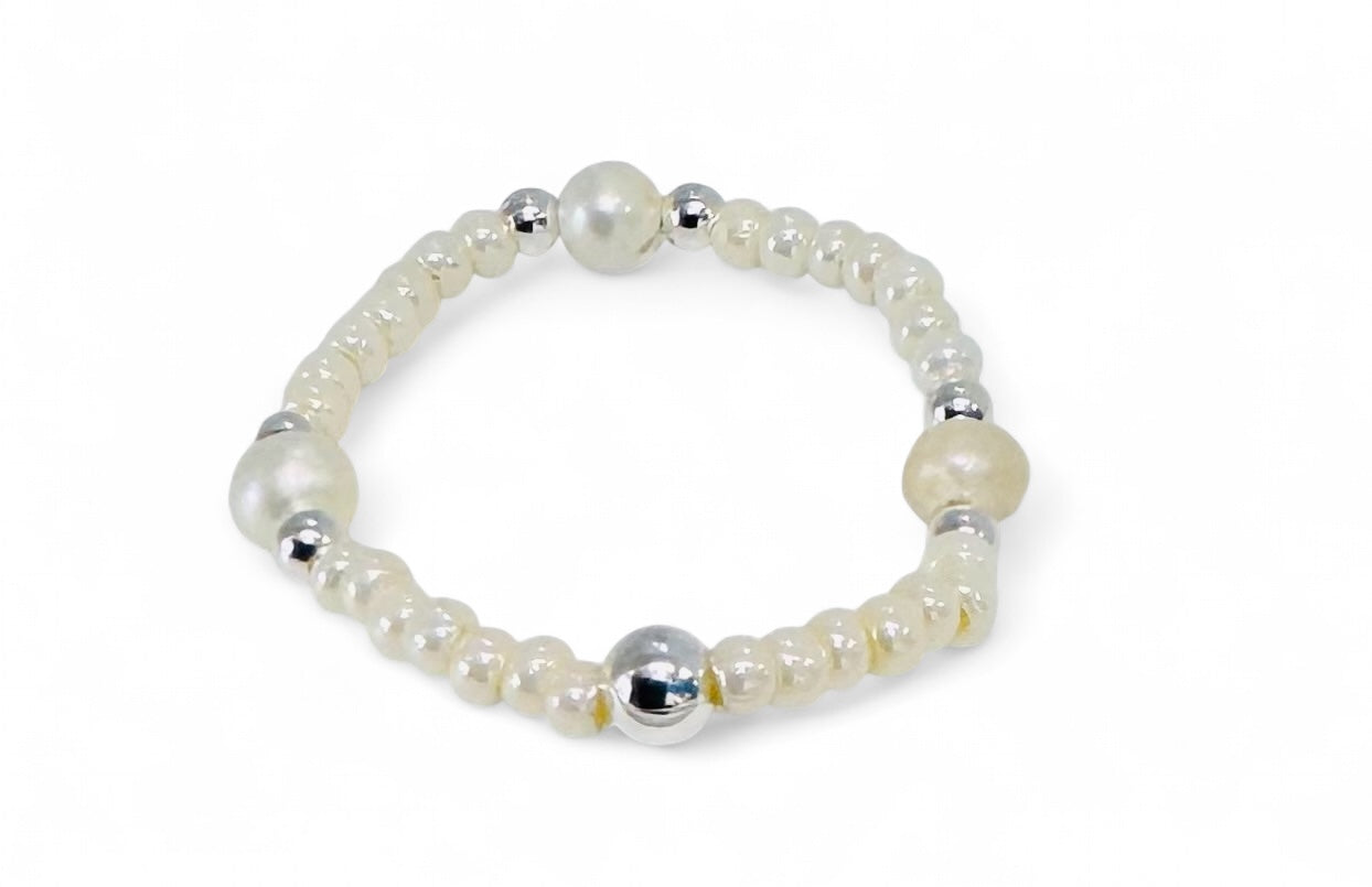 genuine pearls and silver beads 2 mm-4 mm